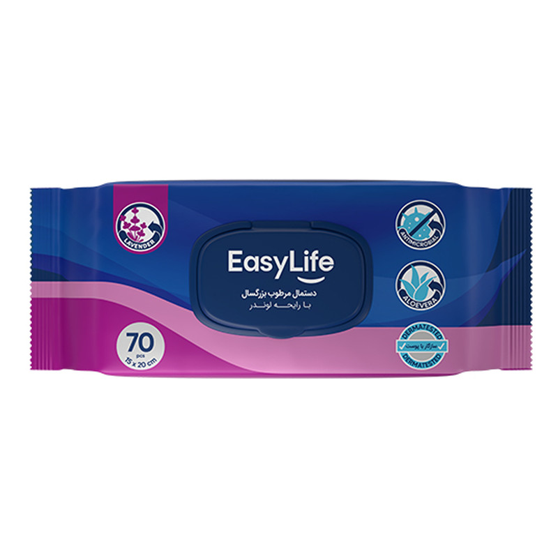 دستمال مرطوب ایزی لایف مدل لوندر بسته 70 عددی