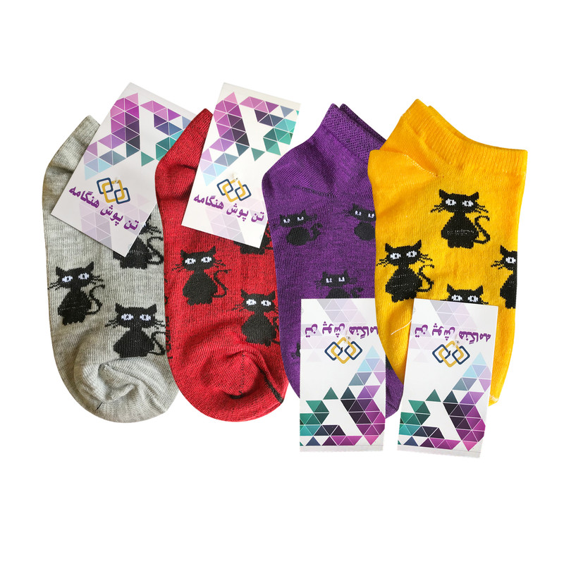 جوراب بچگانه تن پوش هنگامه مدل گربه ایستاده کد baby-gh-t-p-z مجموعه 4 عددی