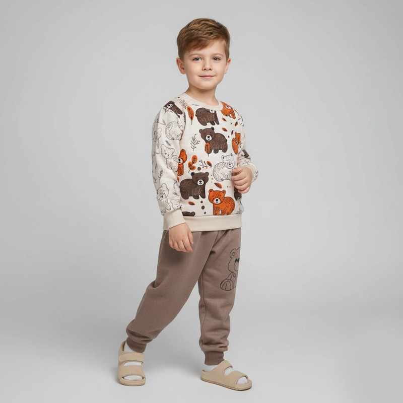ست سویشرت آستین بلند و شلوار پسرانه چیندکا مدل خرسی کد 1004
