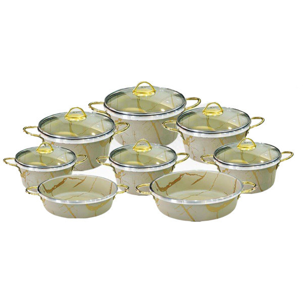 سرویس قابلمه و تابه تفلون ۱۴ پارچه هلنا مدل ماربل