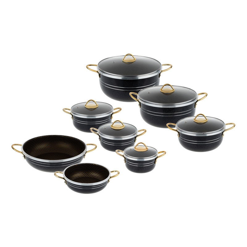 سرویس پخت و پز 14 پارچه هلنا طرح چدن مدل زنبوری
