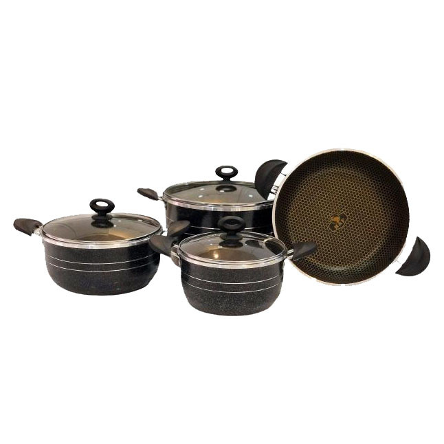 سرویس قابلمه و تابه تفلون ۷ پارچه هلنا مدل ماربل