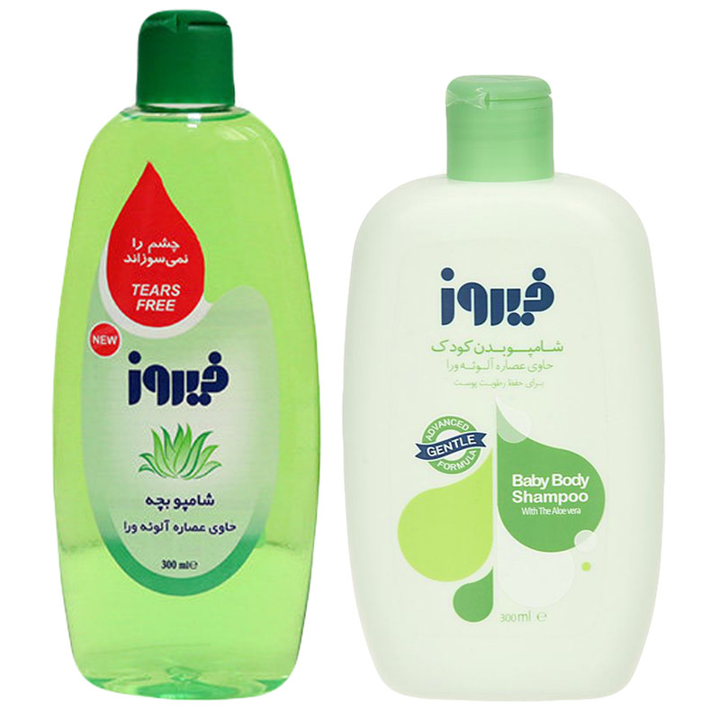 شامپو بچه فیروز مدل نرم کننده حجم 300 میلی لیتر به همراه شامپو بدن بچه فیروز مدل گیاه گوار آبی حجم 300 میلی لیتر
