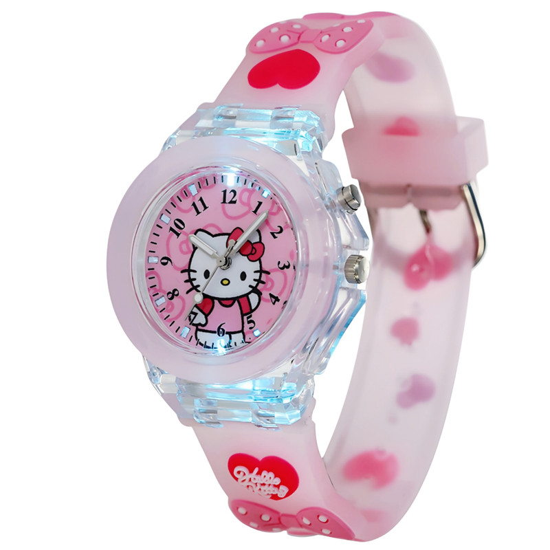 ساعت مچی عقربهای کوارتز بچگانه مدل بند سیلیکونی چراغدار طرح هلو کیتی
