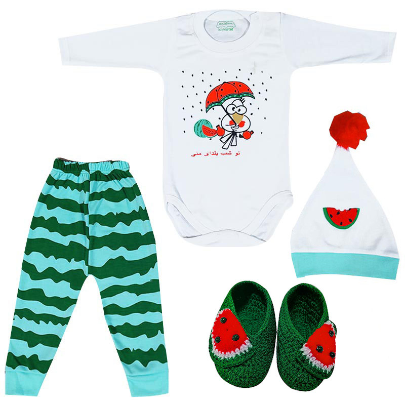 ست 3 تکه لباس نوزادی مدل یلدا طرح هندوانه