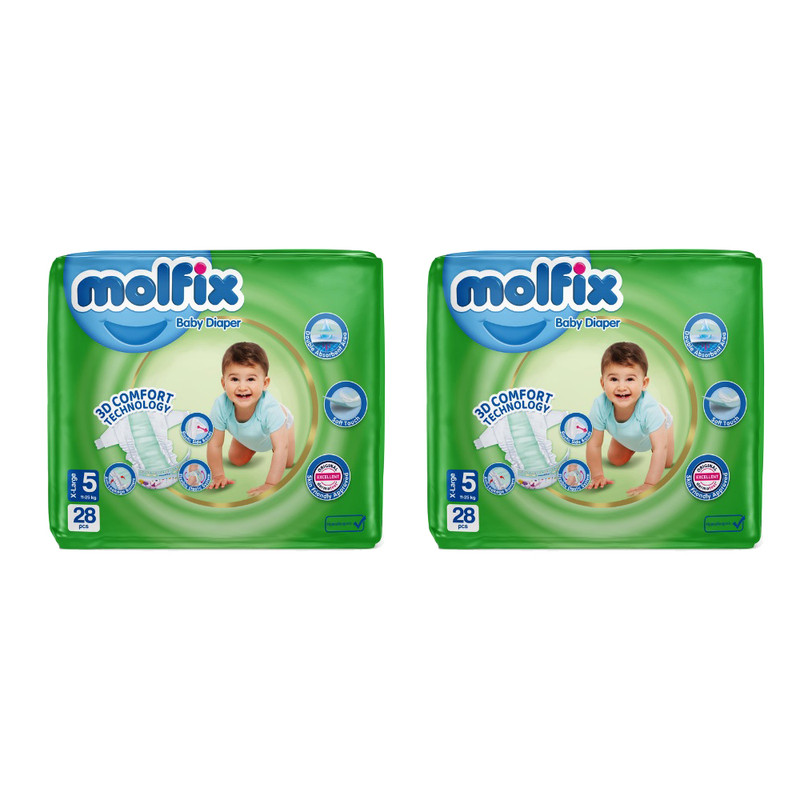 پوشک مولفیکس مدل کامفورت سایز 5 دو بسته ۲۸ عددی