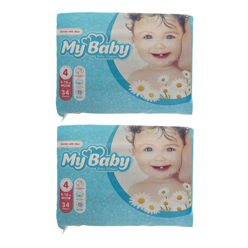 پوشک بچه مای بیبی مدل Max Care سایز 4 دو بسته 34 عددی