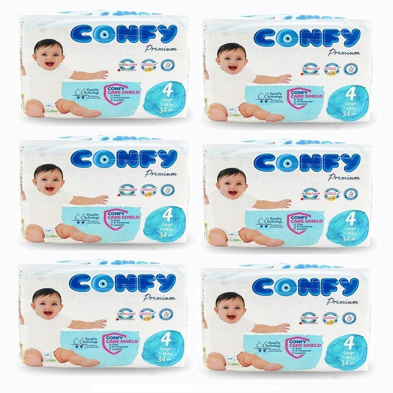 پوشک بچه کانفی مدل PERMIUM سایز 4 شش بسته 34 عددی