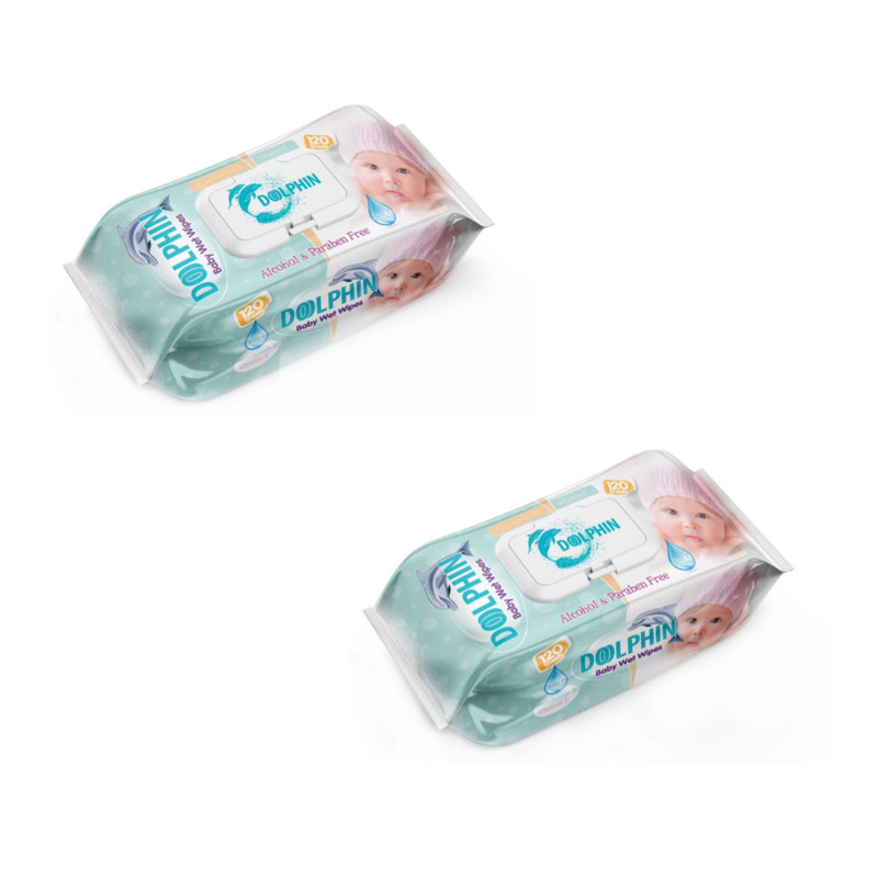 دستمال مرطوب کودک دلفین مدل economy بسته 120 عددی مجموعه 2 عددی