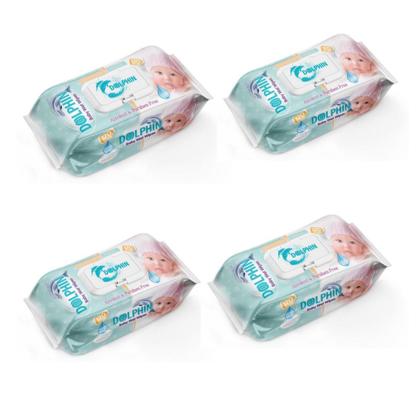 دستمال مرطوب کودک دلفین مدل economy بسته 120 عددی مجموعه 4 عدددی