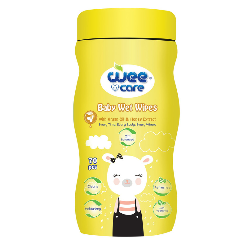 دستمال مرطوب کودک وی کر مدل عصاره عسل و روغن آرگان سیلندری بسته 70 عددی