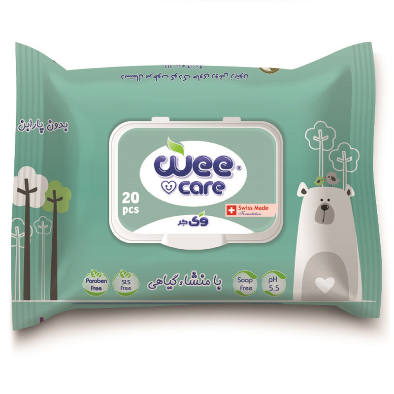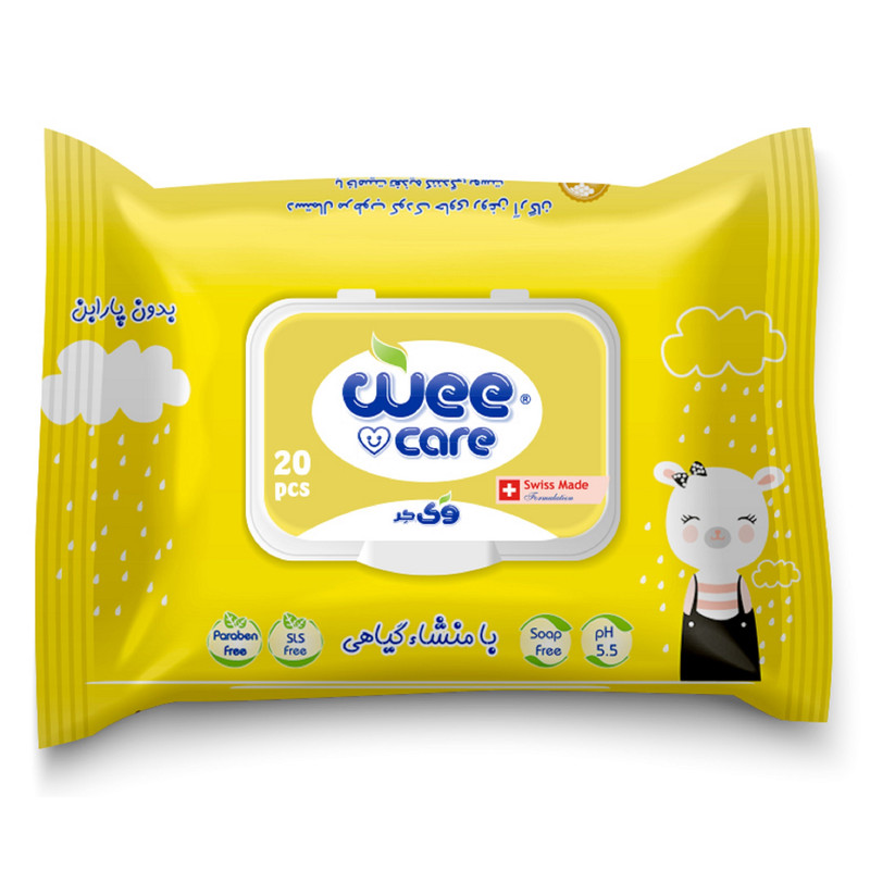 دستمال مرطوب کودک وی کر مدل عصاره آلوئه ورا و روغن زیتون بسته 20 عددی