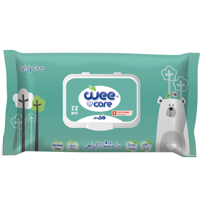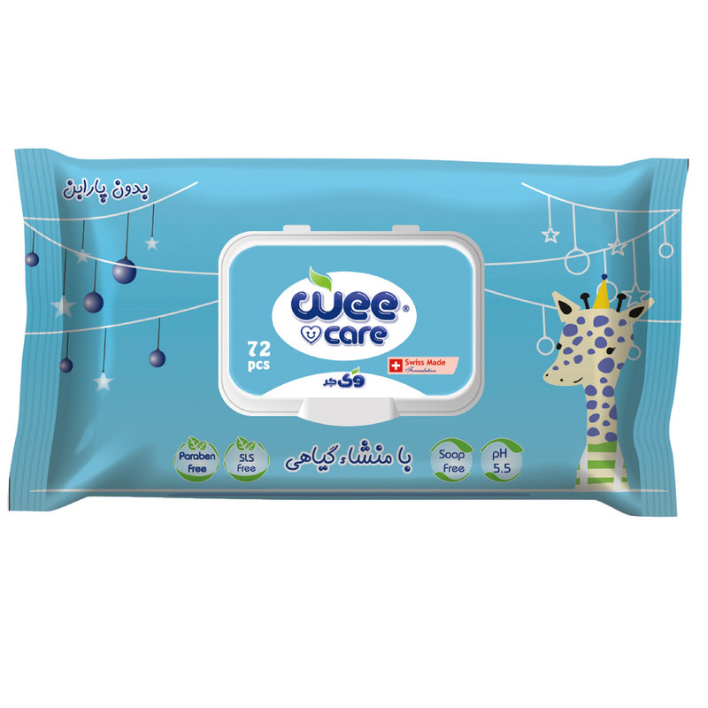 دستمال مرطوب کودک وی کر مدل عصاره آلوئه ورا و روغن زیتون بسته 72 عددی