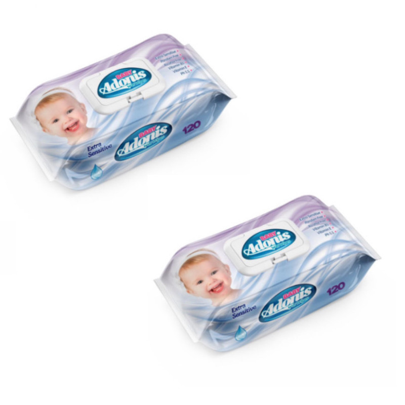 دستمال مرطوب کودک آدونیس مدل extra sensitive کد 690066 بسته 120 عددی