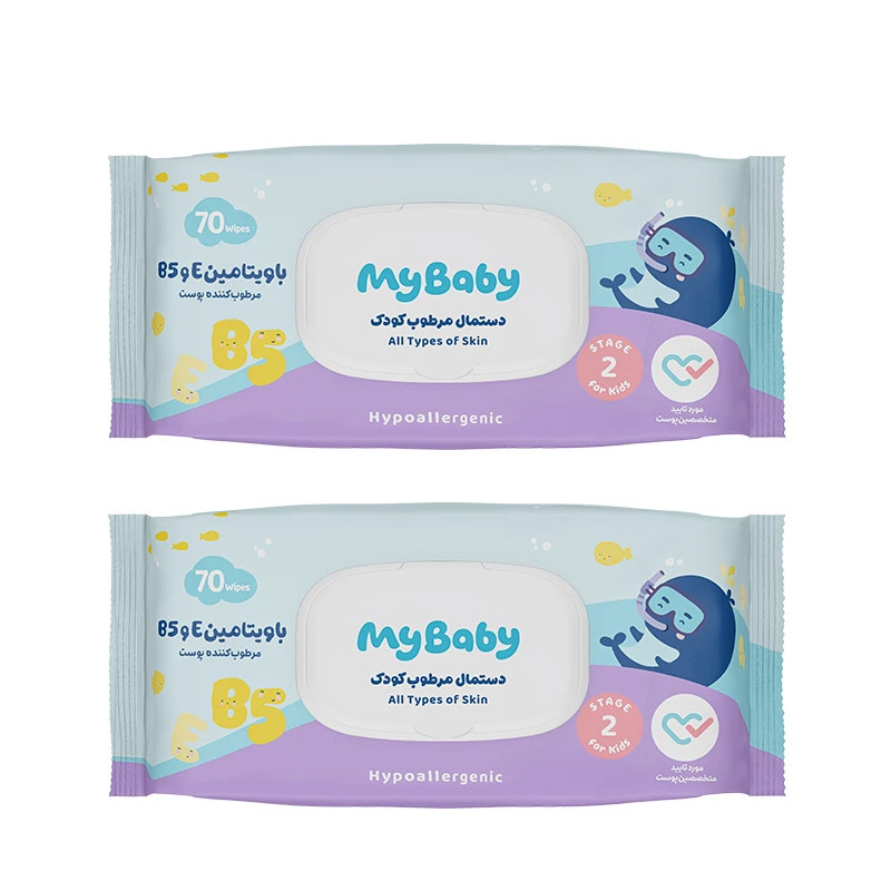 دستمال مرطوب کودک مای بیبی مدل normal دو بسته 70 عددی