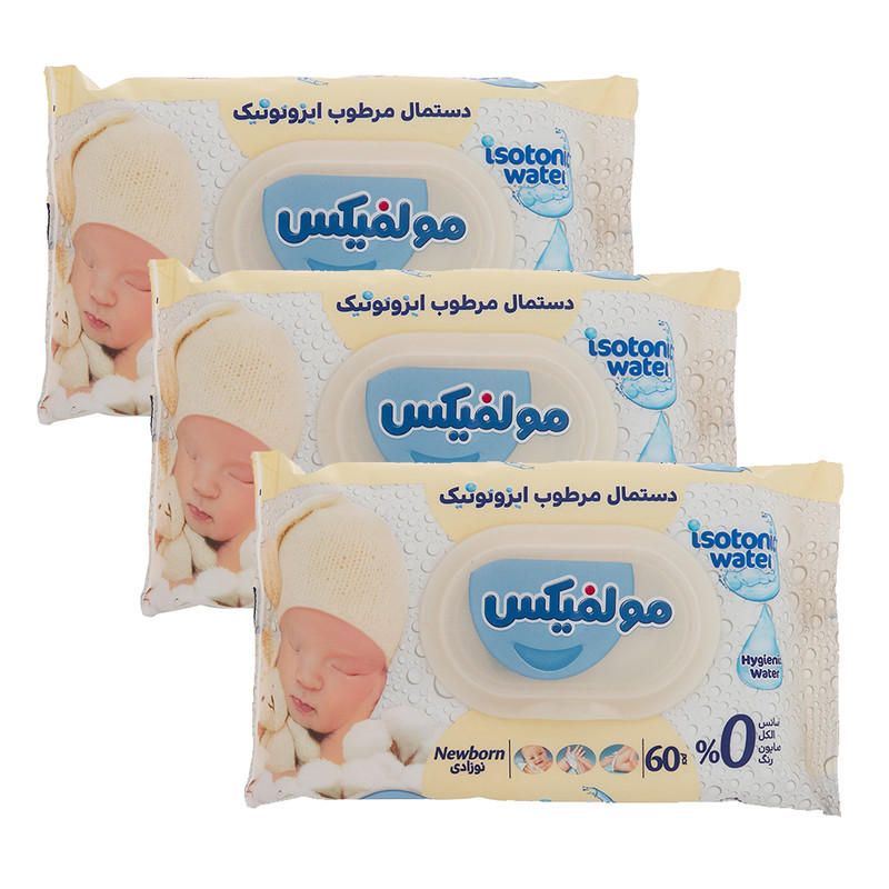 دستمال مرطوب کودک مولفیکس مدل ایزوتونیک 3 بسته 60 عددی