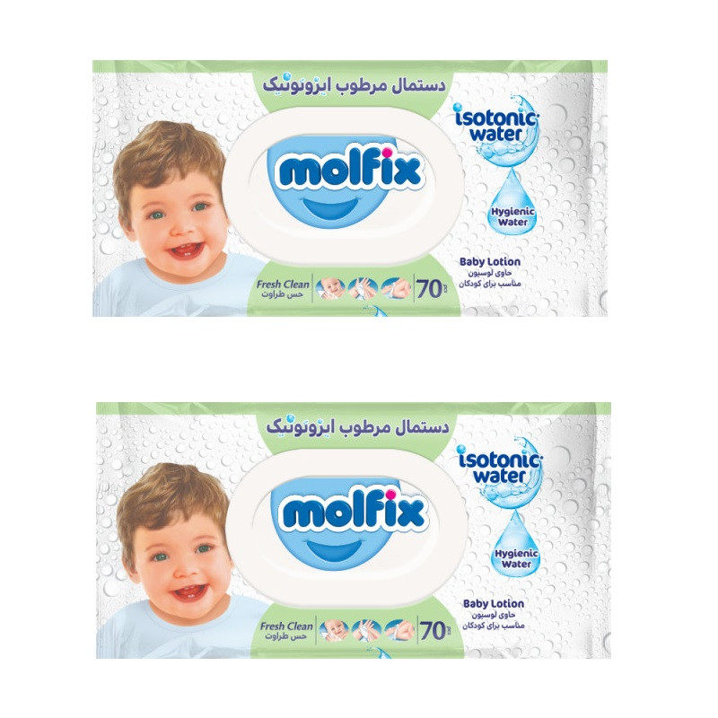 دستمال مرطوب کودک مولفیکس مدل ایزوتونیک بسته 70 عددی مجموعه 2 عددی