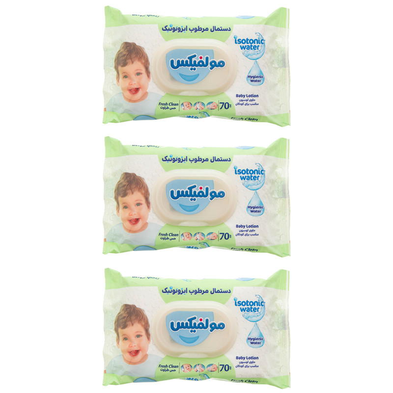 دستمال مرطوب کودک مولفیکس مدل ایزوتونیک سه بسته 70 عددی