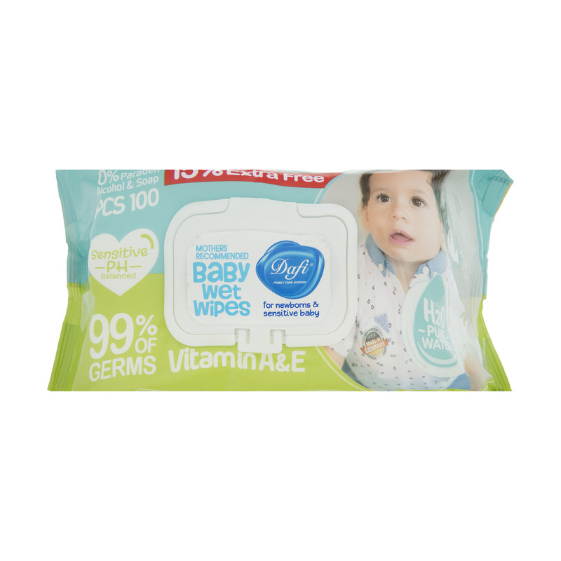 دستمال مرطوب کودک دافی بسته 100 عددی