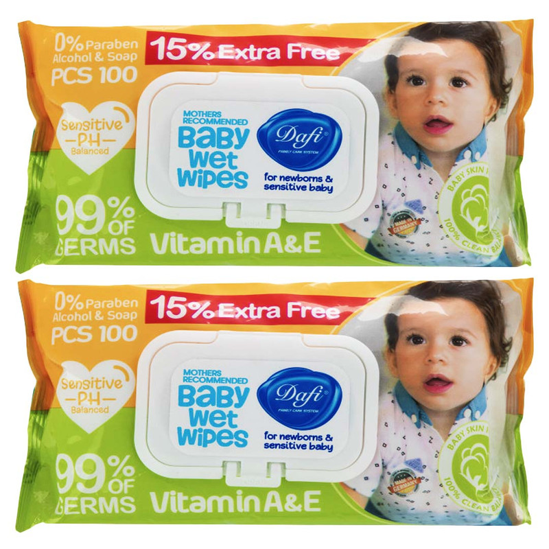 دستمال مرطوب کودک دافی مدل اکسترا دو بسته 100 عددی