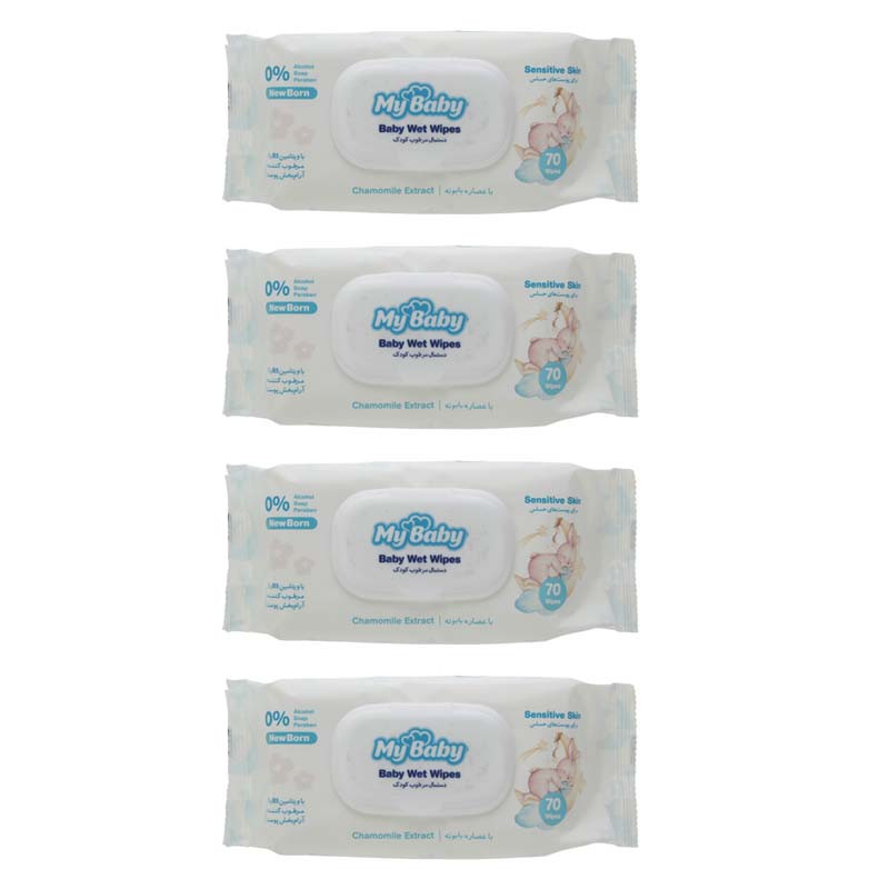 دستمال مرطوب کودک مای بیبی مدل sensitive بسته 4 عددی