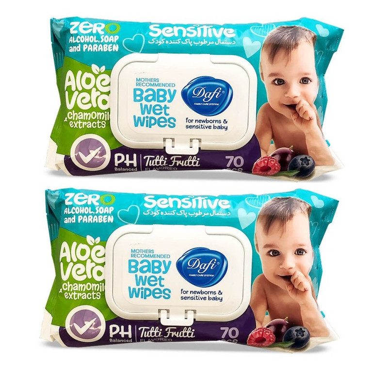 دستمال مرطوب کودک دافی مدل sensetive بسته 2 عددی