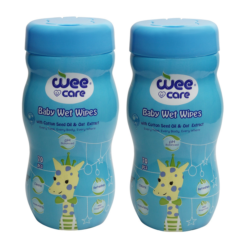 دستمال مرطوب کودک وی کر مدل عصاره جو و روغن پنبه دانه سیلندری دو بسته 70 عددی