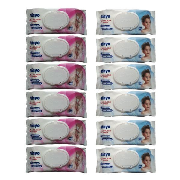 دستمال مرطوب کودک بانیو 120 برگ مدل 012 اقتصادی مجموعه 12 عددی
