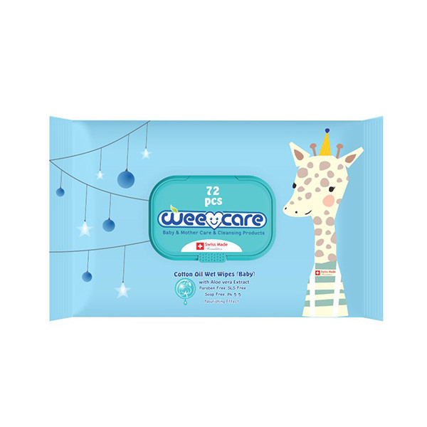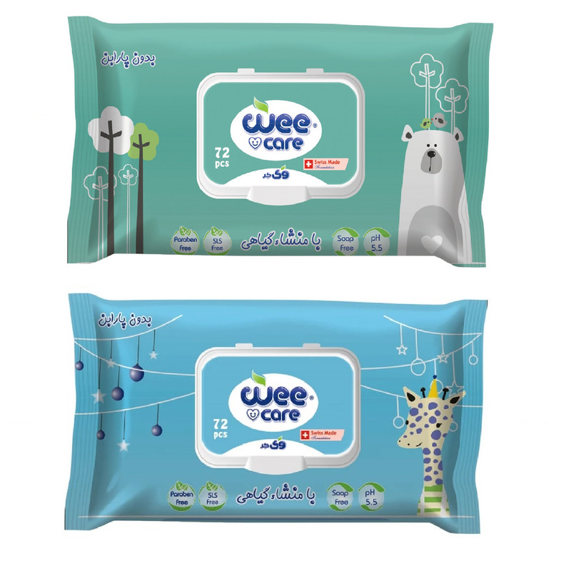 دستمال مرطوب کودک وی کر مدل روغن زیتون و روغن پنبه دانه 2 بسته 72 عددی