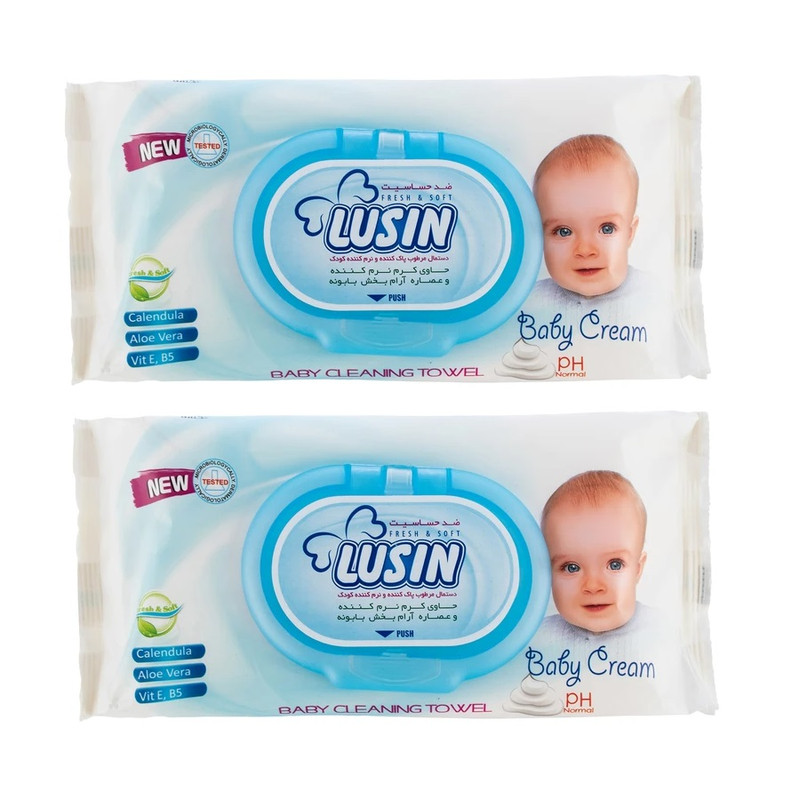 دستمال مرطوب پاک کننده کودک لوسین مدل معطر دو بسته 60 عددی