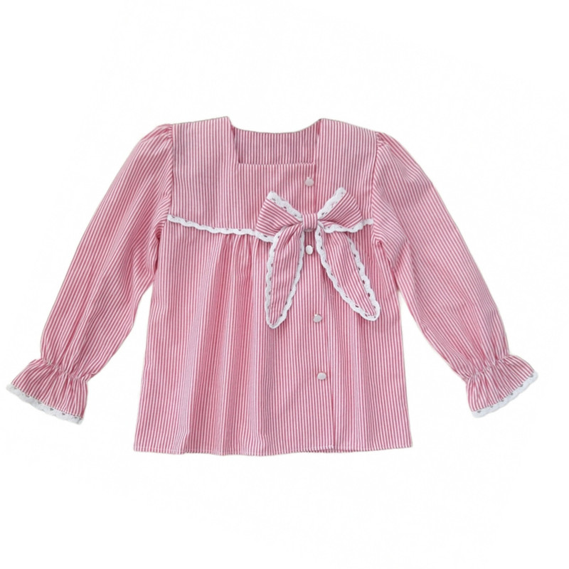 شومیز آستین بلند یقه خشتی دخترانه مدل عروسکی