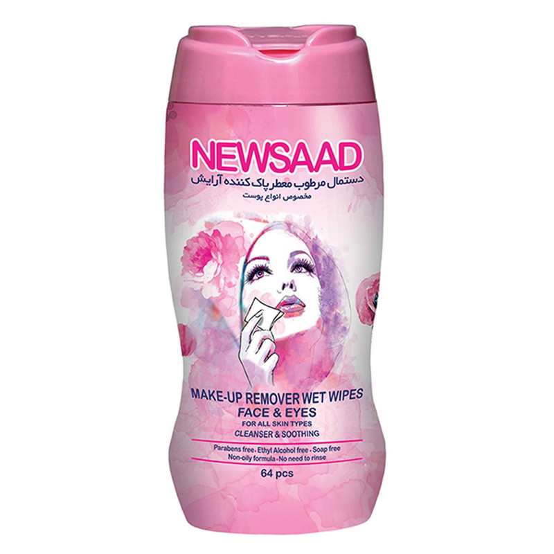 دستمال مرطوب پاک کننده آرایش صورت و دور چشم نیوساد مدل Normal بسته 64 عددی
