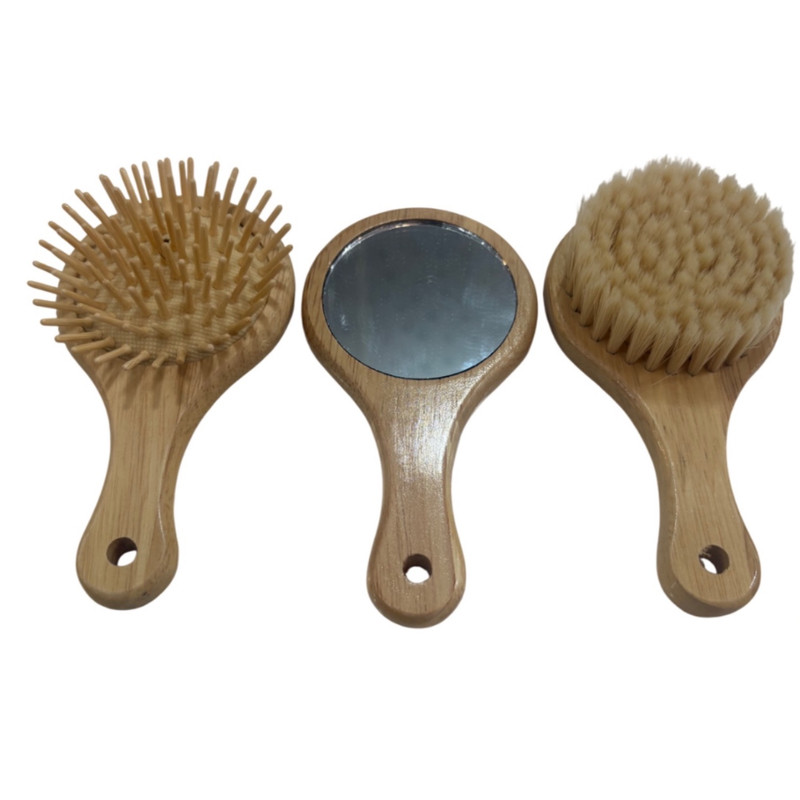 ست شانه و برس کودک مدل شانه برس چوبی مجموعه 3 عددی