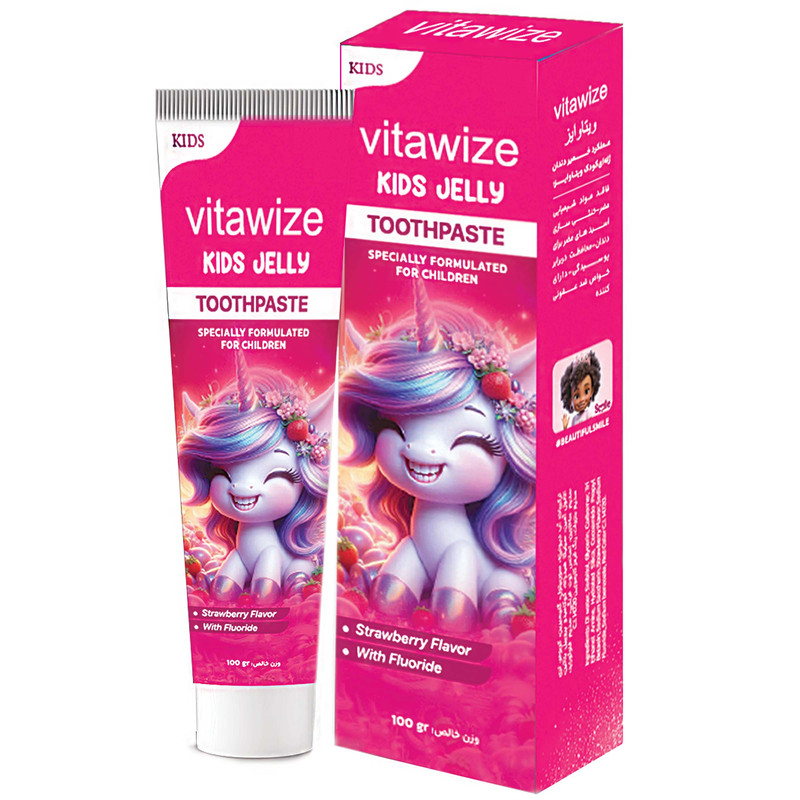 خمیر دندان ژله ای کودک ویتاوایز مدل دخترانه توت فرنگی - 100 گرم