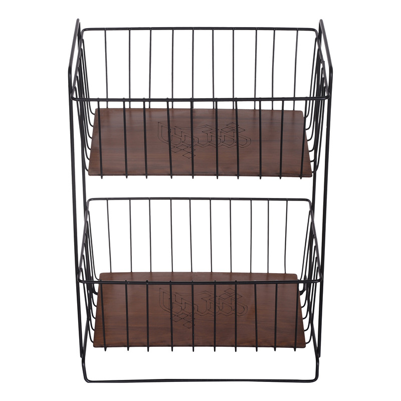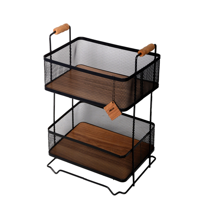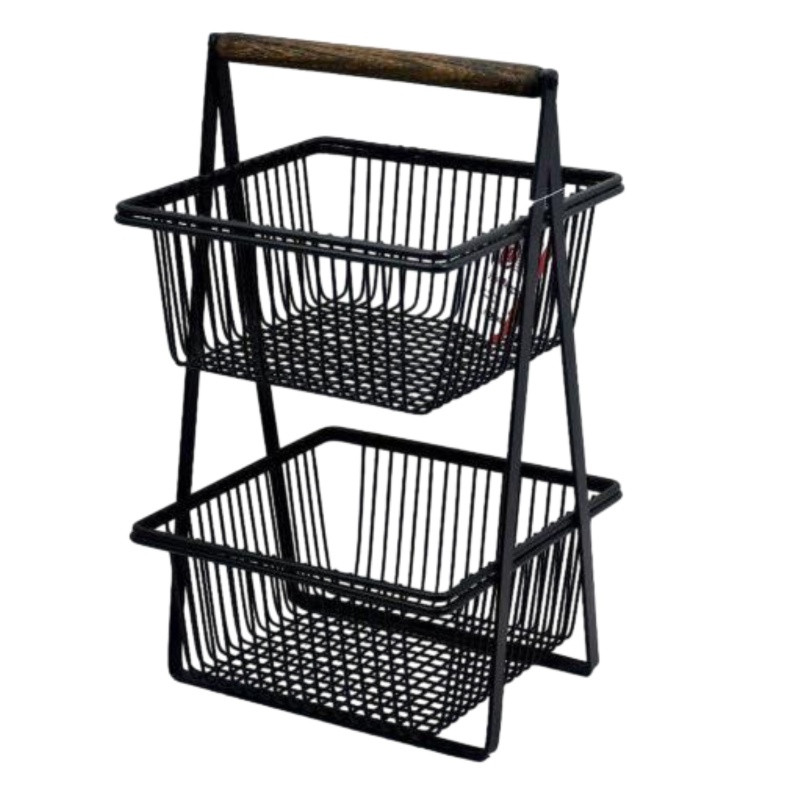 سبد سیب زمینی و پیاز مدل 2 طبقه طرح دسته چوبی