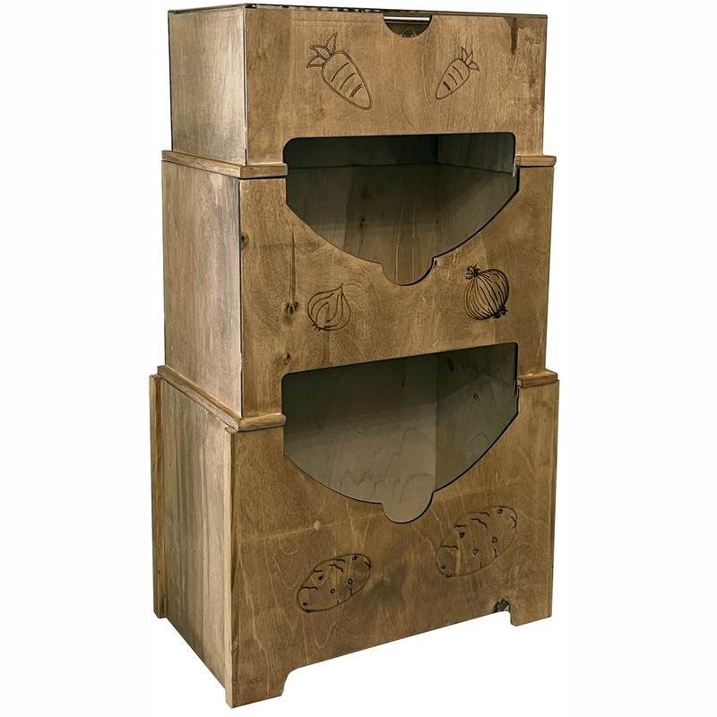 سبد سیب زمینی و پیاز مدل 3 طبقه چوبی متحرک