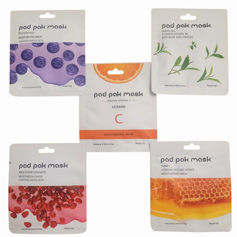 ماسک صورت پد پاک مدل انار چای ویتامین بلوبری و عسل بسته 5 عددی