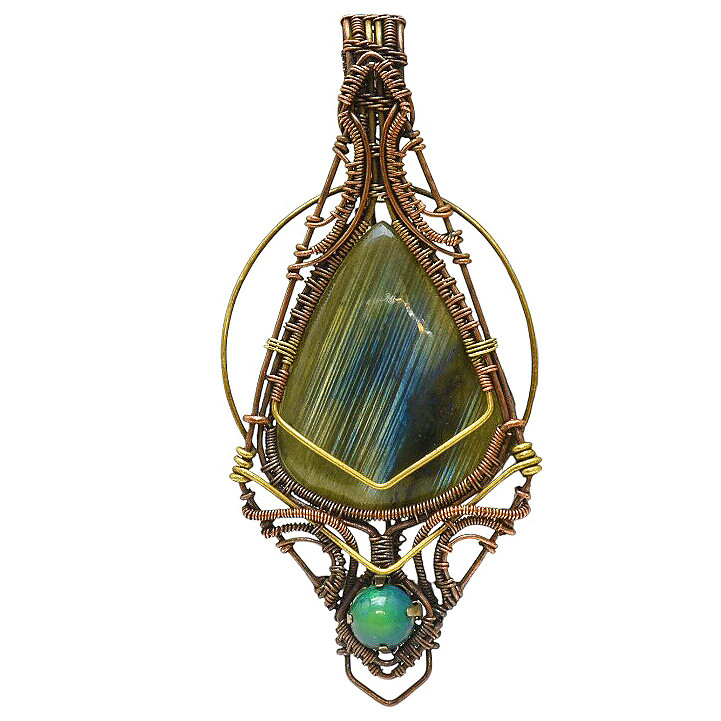 گردنبند مدل مثلث سنگ اوپال و لابرادوریت
