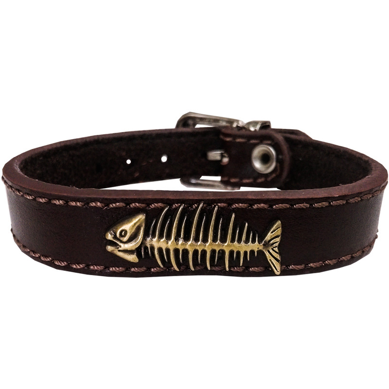 دستبند چرم وارک طرح اسکلت ماهی مدل بن سان کد rb235