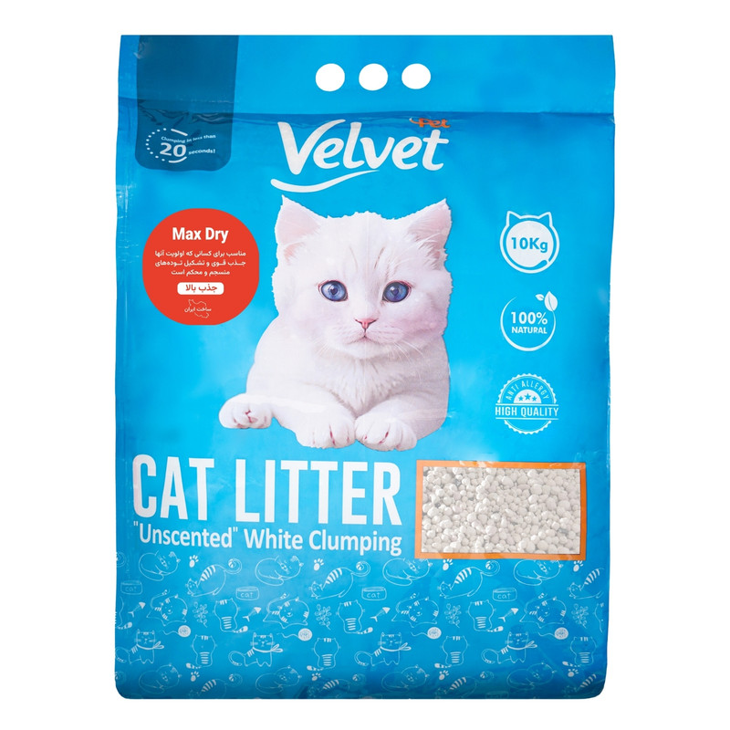 خاک گربه ولوت پت مدل max dry وزن ۱۰ کیلوگرم