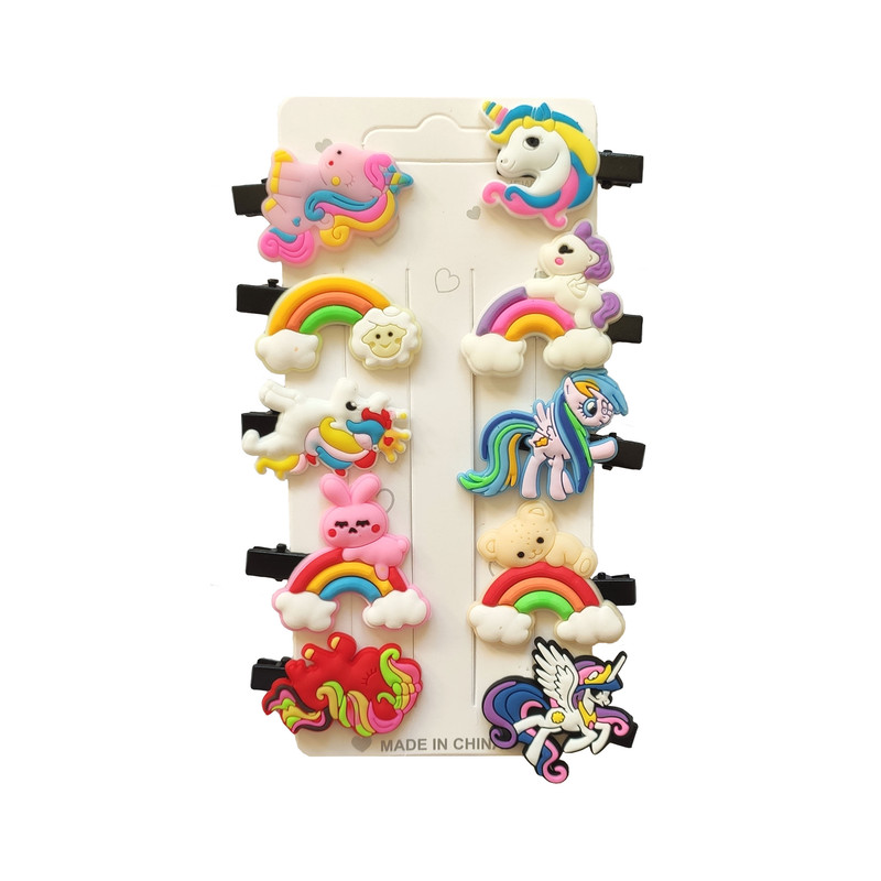 گیره مو دخترانه مدل یونیکورن و رنگین کمان بسته 10 عددی