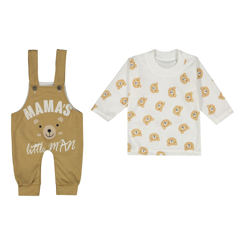 ست تیشرت آستین بلند و سرهمی نوزادی مدل خرس تدی
