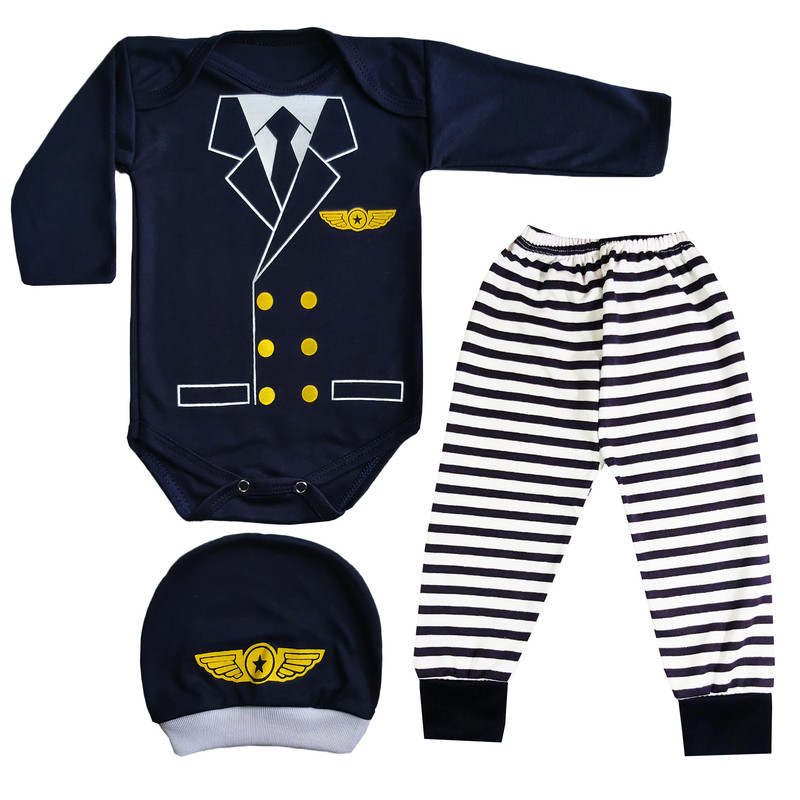ست 3 تکه لباس نوزادی مدل خلبان کوچک کد 002