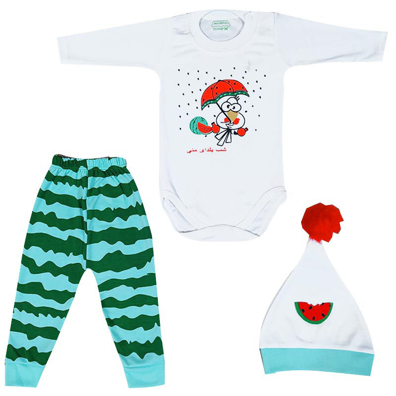 ست 3 تکه لباس نوزادی مدل یلدا طرح هندوانه