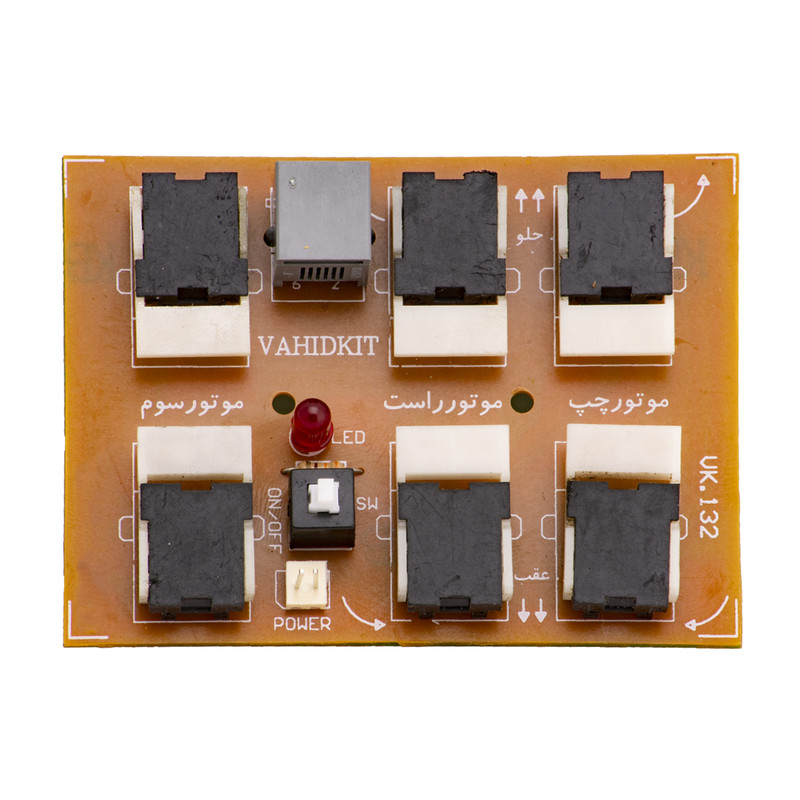 این دسته کنترل دارای شش کلید قطع و وصل و یک کلید تک سوییچ شش پایه جهت قطع و وصل مدارمی باشد. شما با استفاده از شش عدد کلید فشاری می توانید سه موتور را به صورت چپ گرد و راست گرد حرکت دهید