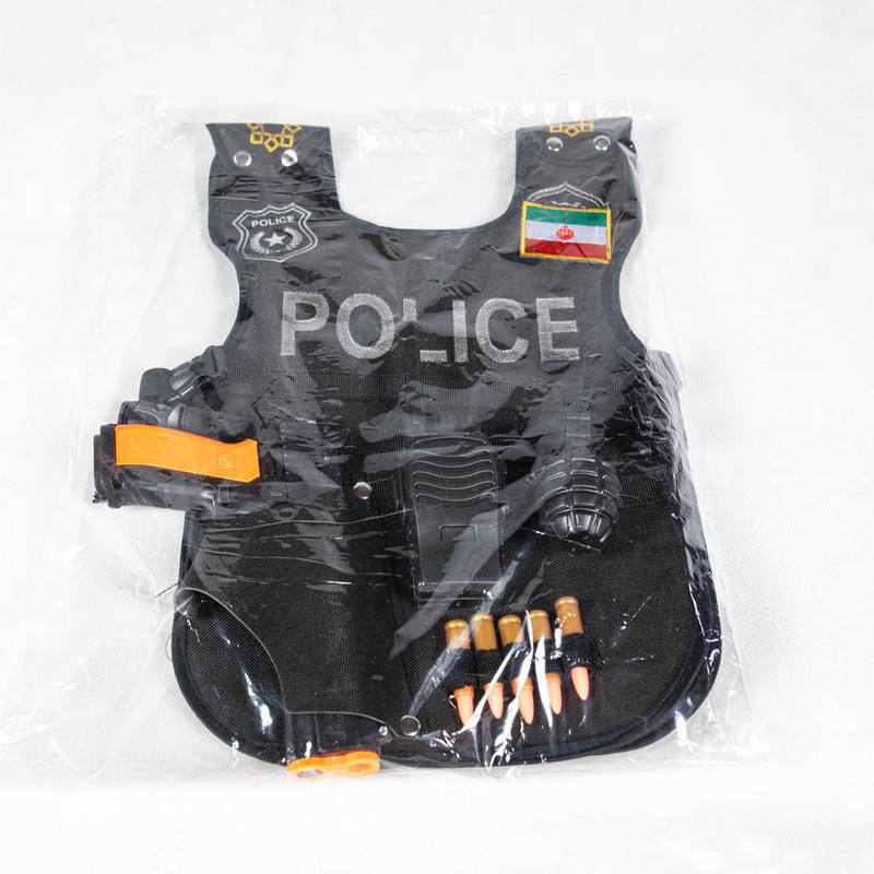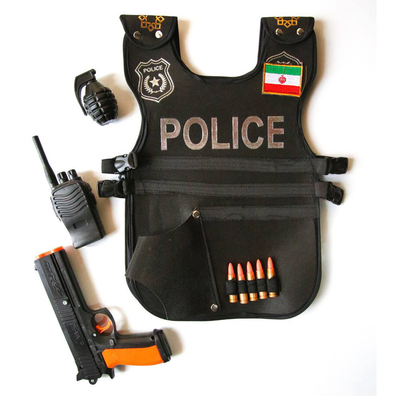 پلیس بازی جزء بهترین و جذاب ترین بازی های کودکانه مناسب برای کودکان 3 سال به بالا است.. و چه بهتر که برای پلیس بازی علاوه بر داشتن تفنگ و نشان پلیس ،جلیقه پلیس و سایر ملزومات آن را هم داشته باشد. تن پوش پلیس ضد شورش شامل جلیقه ضد گلوله پلیس و غلاف تفنگ، واکی تاکی، نارنجک و پنج عدد فشنگ نمایشی میباشد که برای نقش بازی کودکان بسیار ایده ال است و بازی با آن موجب افزایش خلاقیت در کودکان می شود.