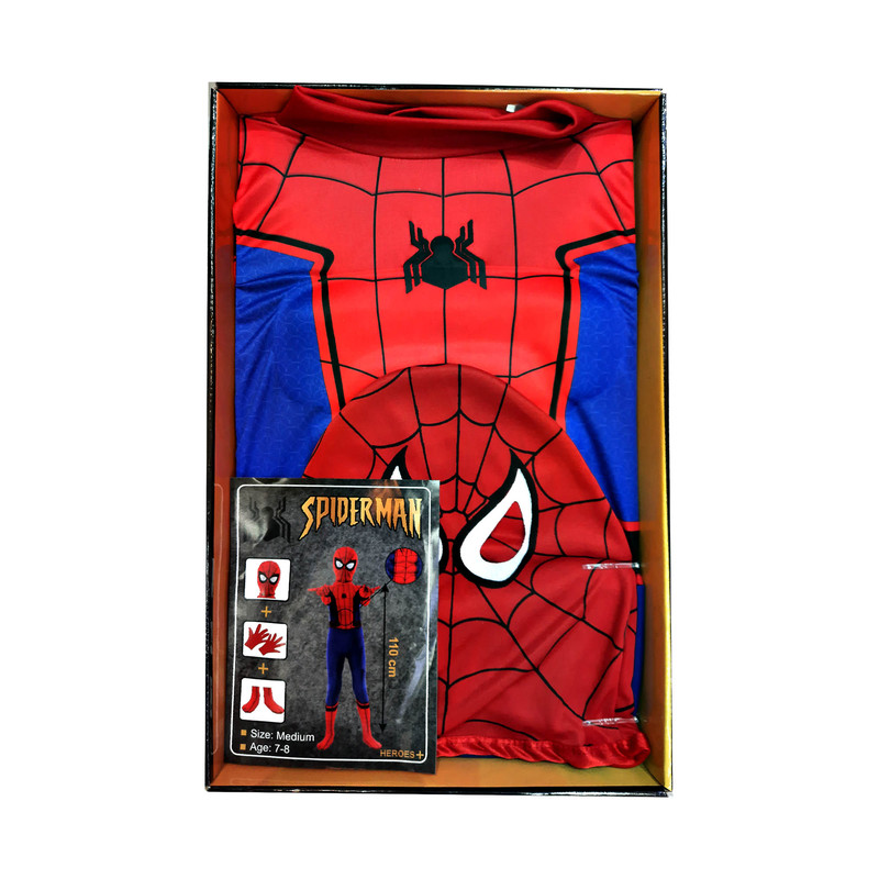 سایر اجزا: شامل کلاه پارچه ای طرح مرد عنکبوتی، یک جفت دستکش، یک جفت جوراب