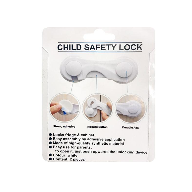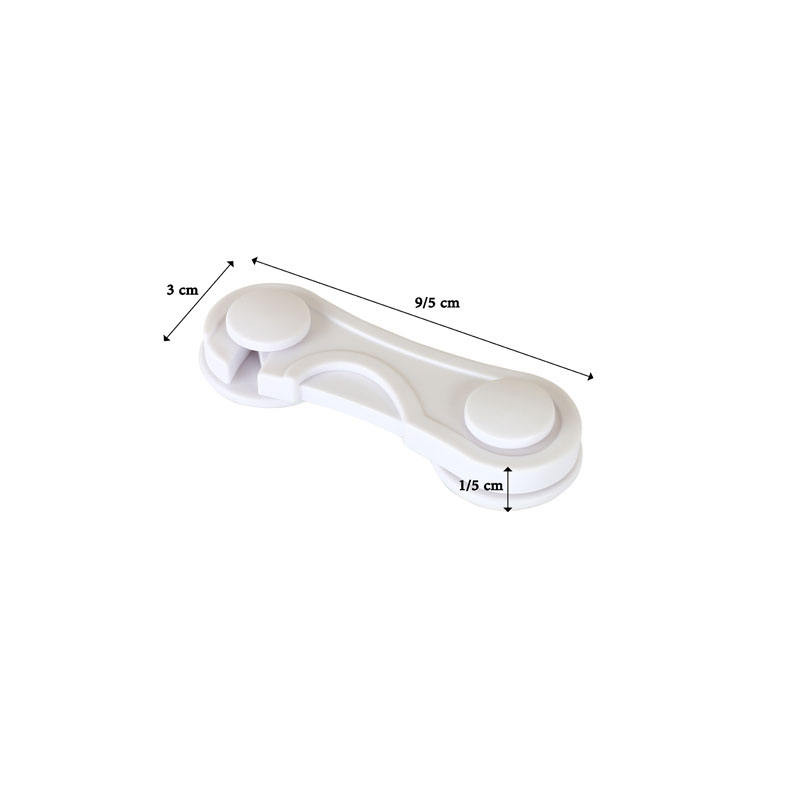 با نصب قفلهای مخصوص ایمنی کودک بر روی دستگیره کمد ، کابینت و یخچال و فریزر، احتمال آسیب دیدن کودک نوپای خود را به حداقل میرسانید. این مدل قفل قابلیت نصب بر روی انواع درب ها را دارد. جنس این محصول پلاستیکی بوده و دریک بسته دو عددی عرضه میشود. هر قفل دارای دو دکمه به همراه برچسبی است که آن را روی سطح درب کابینت یا یخچال محکم میکند. باز و بسته شدن این قفل با شاسی موجود روی محور آن صورت میگیرد که مسلما از کودک برنمیآید که آنرا باز کند.
