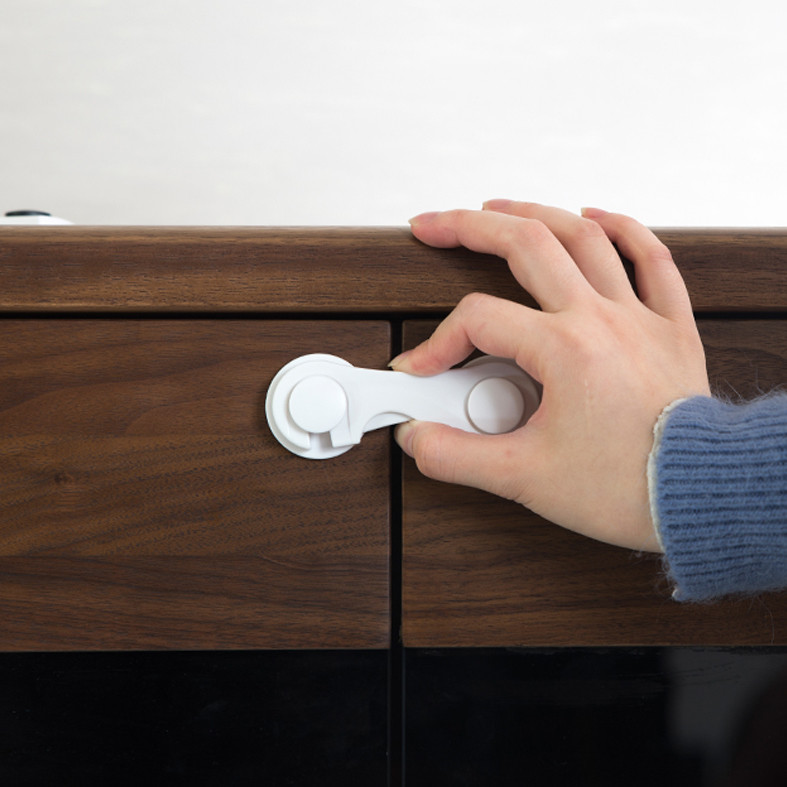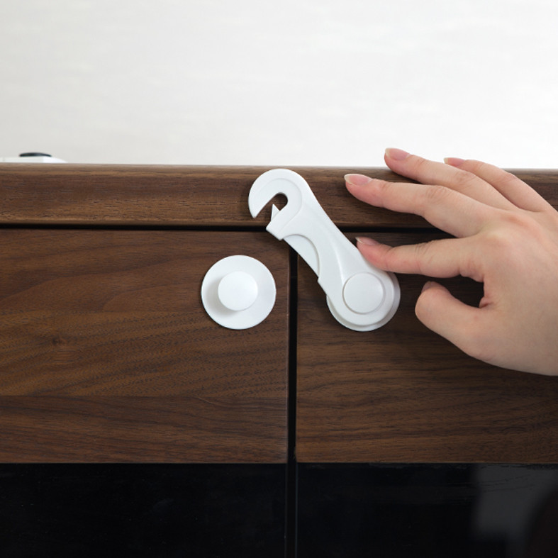به این ترتیب میتوانید نگرانیهایتان را در این مورد فراموش کنید. جهت جلوگیری از دسترسی کودکان به کابینت و کمد و یا کشوهایی که مواد شوینده یا قرص و شربت و دارو و وسایل ریز و کوچک در آنها نگهداری می شود که اغلب شیشه ها و بسته بندی های رنگی و جذابی دارد چرا که قطعا دسترسی آسان آن میتواند خطرات جبران ناپذیری را به بار آورد. و یا کابینت ها و کشوهایی که داخل آنها وسایل شکستی یا تیز وجود دارد. این قفل برای کابینت و کمدهای دو در و هم سطح و یا کمد و کشو های کنار هم که هم سطح باشند استفاده میشود.