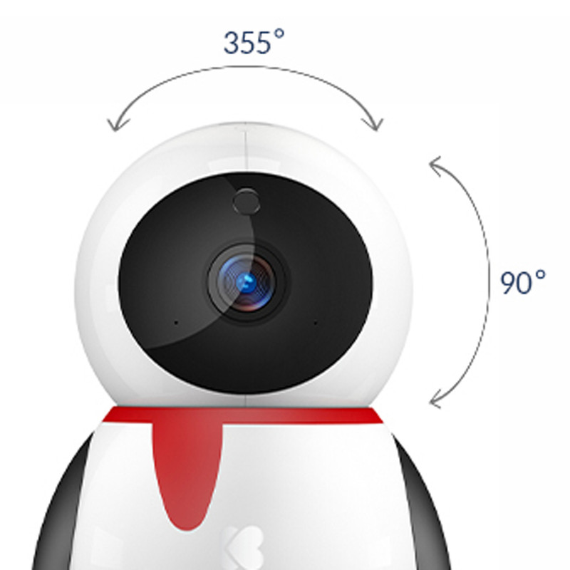 دوربین اتاق کودک کیکابو پنگوئن، علاوه بر طراحی زیبا و خلاقانه، خصوصیاتی مانند سنسور حرکت کودک و اطلاع رسانی، دید در شب، مکالمه دو طرفه، ضبط ویدیو، پخش زنده و چرخش بالا و پایین و … دارد که بسیاری از مشکلات شما را حل می کند.در ابتدا باید گفت که نصب و راهاندازی دوربین وایفای پنگوئن بسیار آسان بوده و با نصب اپلیکیشن IPC360 در گوشی اندروید یا ios خود میتوانید به راحتی از آن استفاده کرده و هم زمان 5 موبایل یا تبلت را به دوربین متصل کنید. به واسطه قابلیت دید در شب، شما در طول شب، بدون روشن کردن چراغ اتاق بچه، از سلامت کودکتان خاطر جمع خواهید شد. علاوه بر آن، این دوربین مجهز به سیستم مکامله دو طرفه است که به کمک آن، شما می توانید به راحتی از اتاق خودتان یا هر جای دیگر خانه، با فرزند عزیزتان صحبت کنید. اگر جزء آن دسته از والدینی هستید که نگران حرکت نوزاد، وضعیت و حتی دمای اتاق او هستند، باید گفت که همه این مشکلات با دوربین اتاق کودک کیکابو پنگوئن حل شده است. هر حرکت نوزاد توسط این دوربین ردیابی و به شما اعلان می شود. گفتنی است که دوربین وایفای کیکابو دارای یک لنز 3/6 میلیمتری با کیفیت ضبط 1080 است. به کمک چرخش 355 درجهای به چپ و راست و 90 درجهای بالا به پایین، شما تمام زوایای لازم برای دیدن نوزاد خود را دارید. نگران محل ذخیره ویدیو ها نباشید چراکه می توانید تا ظرفیت 128 گیگابایت از کارت حافظه استفاده کنید.